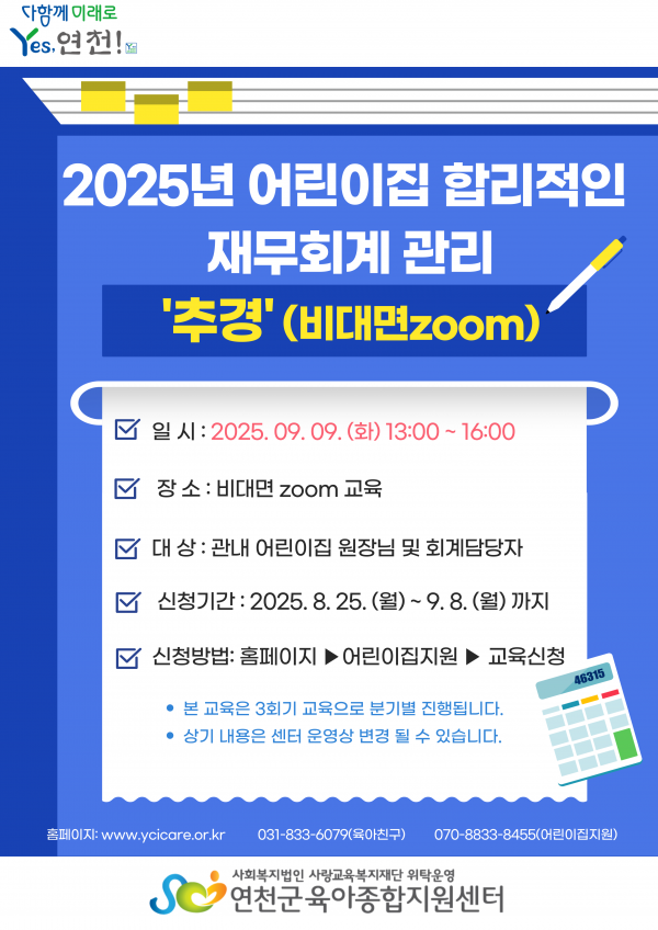 대상 | 관내 어린이집 원장님 님 회계담당자 | 교육비 | 무료 |