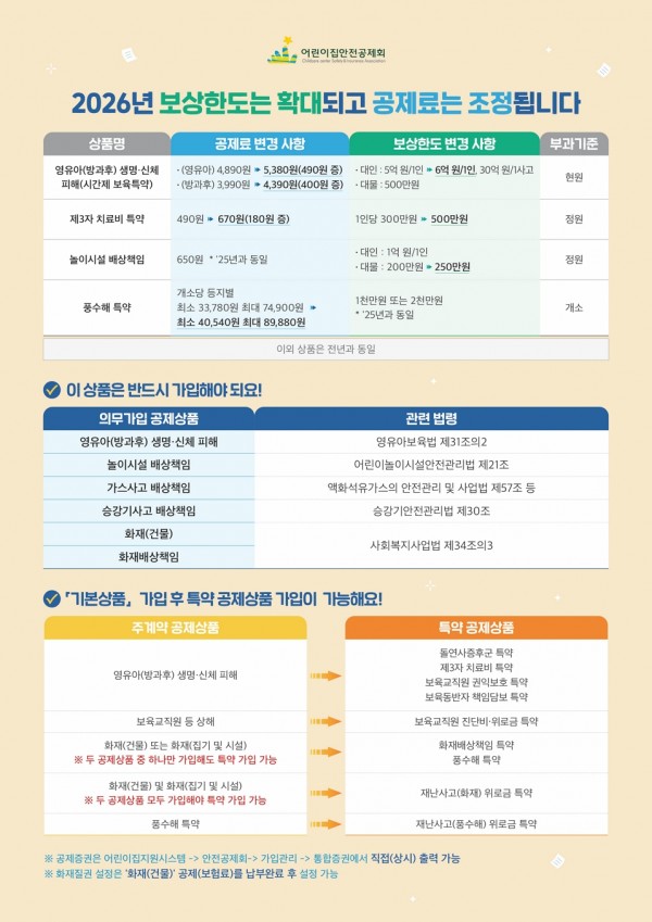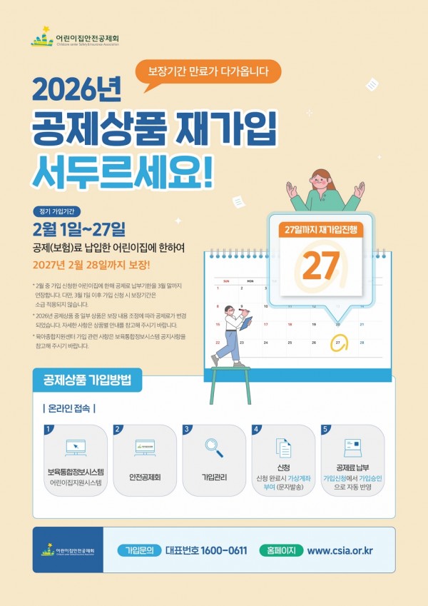 운영 [어린이집안전공제회] 2026년 공제상품 재가입 ('26.2.1.(일) ~ 2.27.(금)) 안내