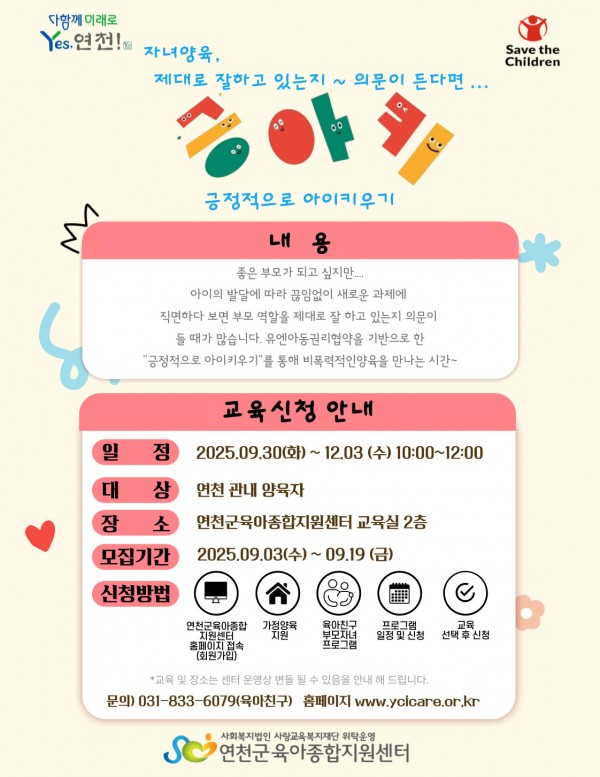 연천군육아종합지원센터에서 준비한 「긍.아.키 시리즈 부모교육」에 초대합니다.