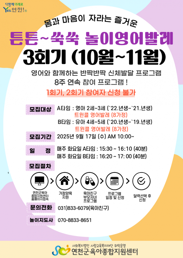 대상 | 연천군 영아 2~3세 | 교육비 | 무료 |