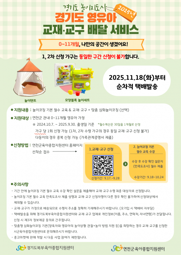 [경기도 놀이지도사 사업] 영유아 교재·교구 배달 서비스 신청!