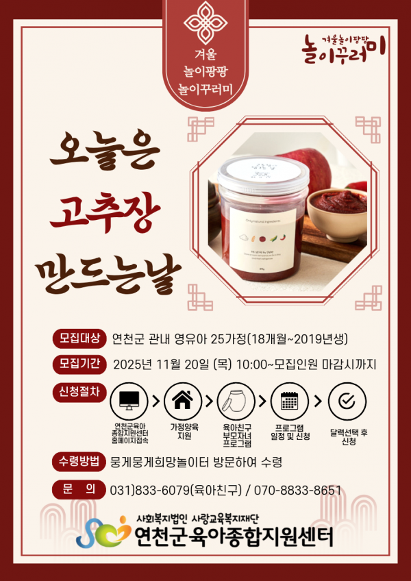 - 모집내용 : 겨울을 놀이팡팡 놀이꾸러미 - 오늘은 고추장 만드는 날