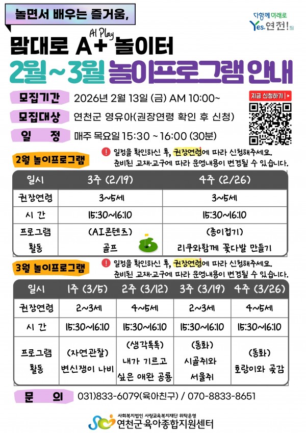 [맘대로 A+놀이터 놀이프로그램 안내]