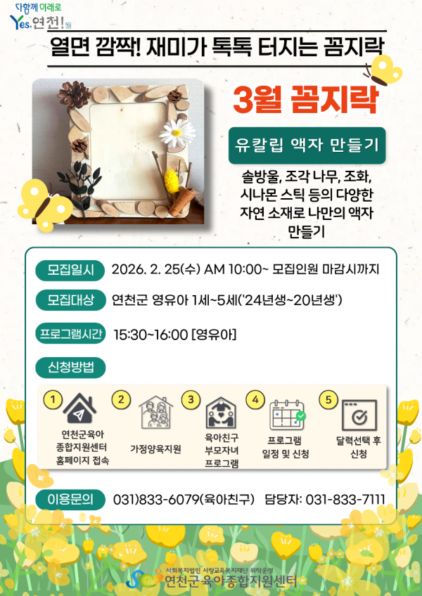 | 대상 | 연천군 관내 영유아 및 양육자 | 교육비 | 무료 |