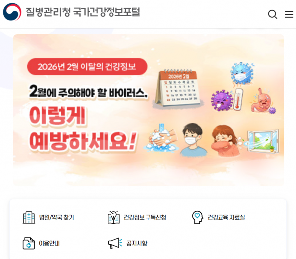 질병관리청 국가건강정보포털 ! 2월에 주의해야 할 바이러스!