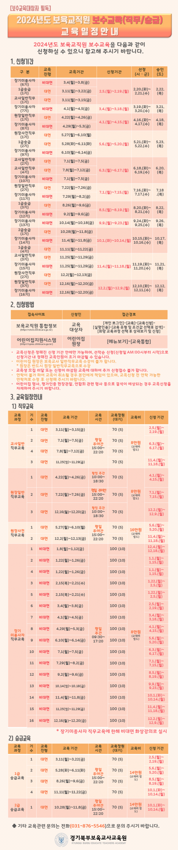 2024년 보육교직원 보수교육(직무/승급) 신청방법 및 일정안내