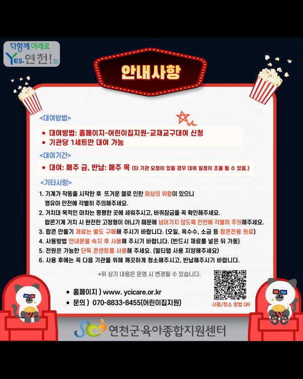 [어린이집지원] ★팝콘기계·마차★ 대여방법이 홈페이지 대여로 변경되었습니다!