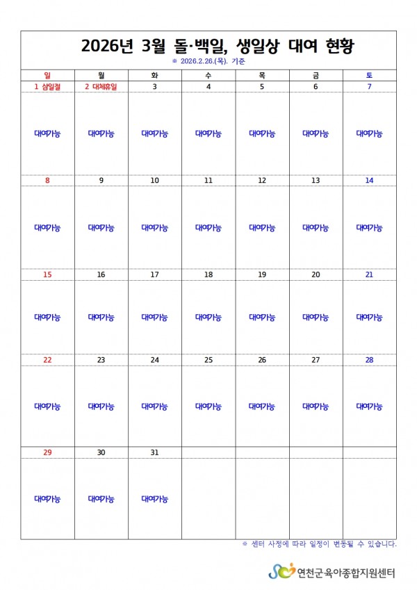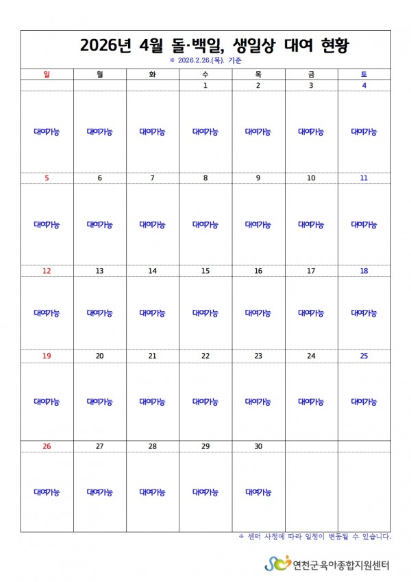 [어린이집지원] 돌백일상·생일상 3월~4월 대여 현황 확인하기 (26.2.26) > 공지사항