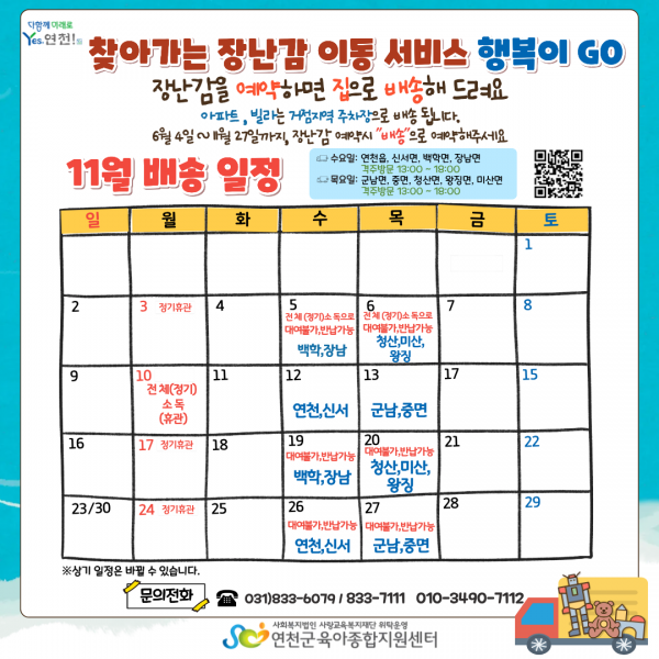 행복이GO 장난감 이동 서비스 11월 배송 일정(11월 5일~11월 27일)