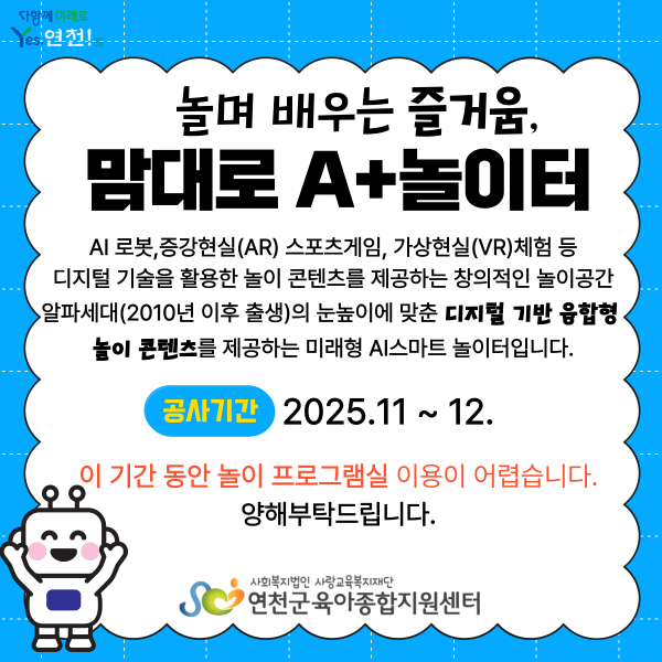 놀면서 배우는 즐거움, 맘대로 A+놀이터 공사기간 안내