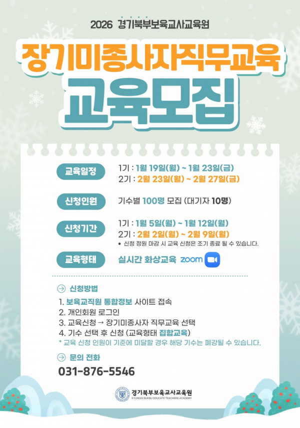[경기북부보육교사교육원] 2026년 장기미종사자 직무교육 (1~2월) 모집안내 > 공지사항