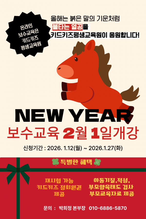 [키드키즈평생교육원] 보육교직원 온라인 특별직무교육 2026년 2월 개강반 안내