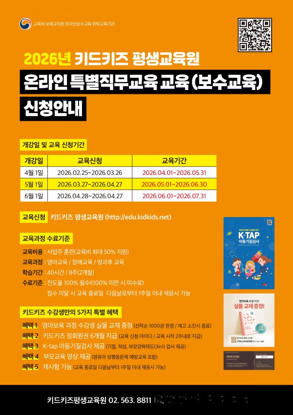 [키드키즈평생교육원] 보육교직원 온라인 특별직무교육 2026년 4월 개강반 안내