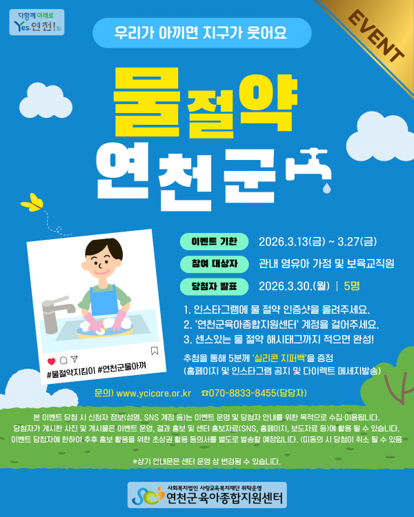 [EVENT] 연천군육아종합지원센터 ESG 탄소중립 '3월 22일 물의 날' 실천 ★이벤트!★