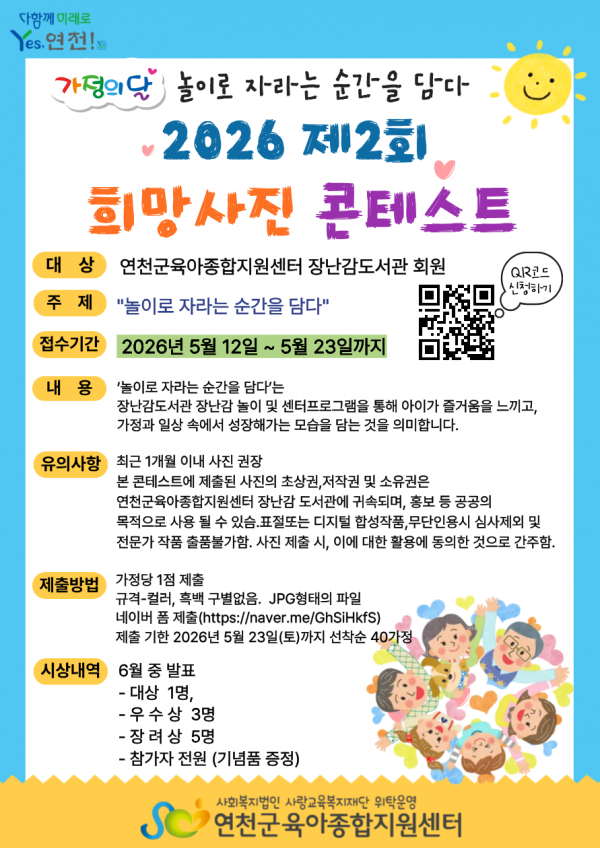 2026 제2회 “놀이로 자라는 순간을 담다” 희망사진 콘테스트를 안내드립니다.
